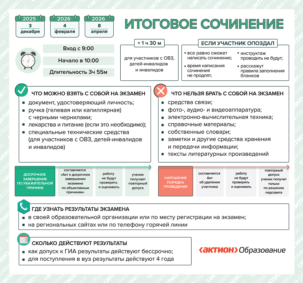 • Итоговое сочинение (изложение) начинается в 10.00 по местному времени.