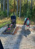 Первая точка экскурсии - Памятный знак, установленый на выезде из п. Педасельга. Этот памятник посвящён минёрам, которые в 1944–1946 годах разминировали Прионежье после его освобождения от оккупации.